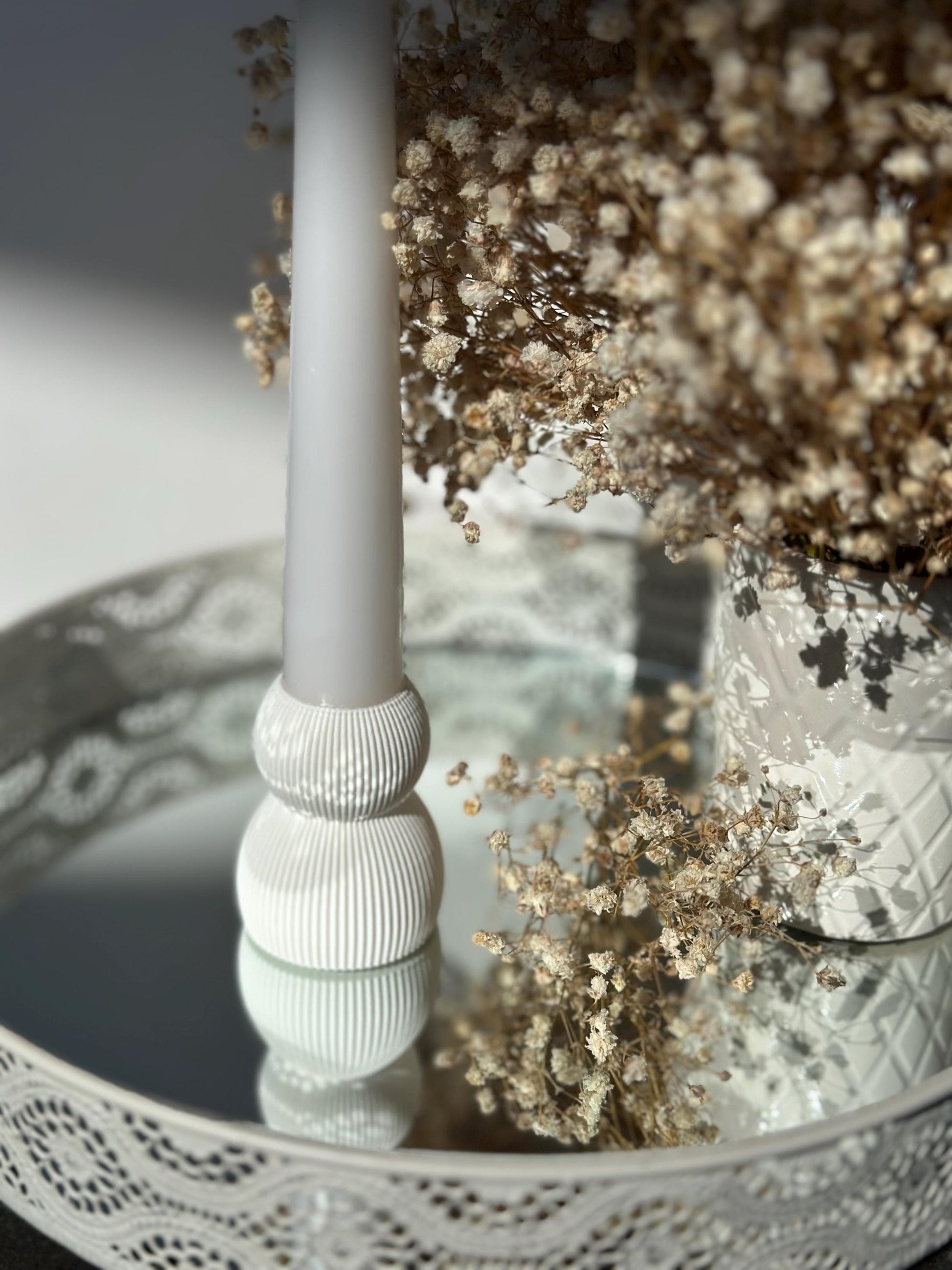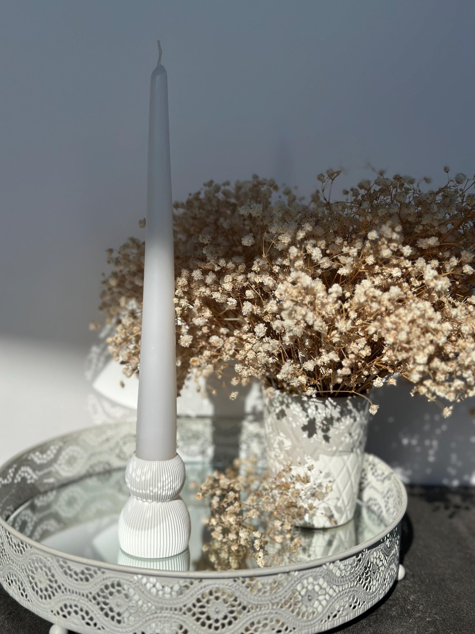 Taper candle holders that add a touch of sophistication to weddings, events, and everyday spaces. Lightweight and durable, they’re perfect for bridal table settings, romantic dinners, or minimalist home decor.
